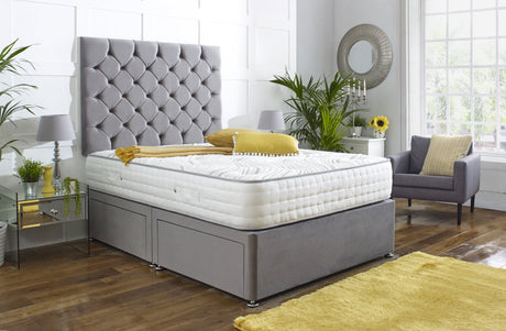 Royale Divan Bed Set With Tall Button Headboard Plus Footboard